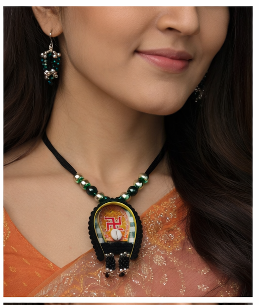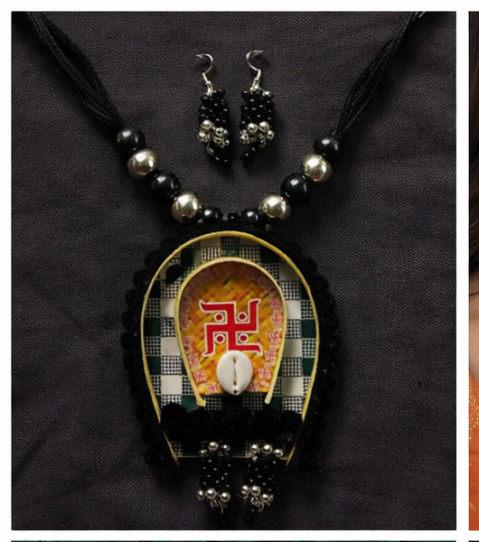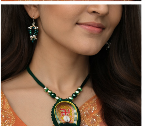 Elevate your spiritual style with this exquisitely handcrafted Swastik Cowrie Pendant Necklace Set, a unique blend of traditional symbolism and contemporary ethnic design. Thoughtfully created by skilled artisans from West Bengal, this piece reflects the rich cultural heritage of India while embracing eco-conscious craftsmanship.